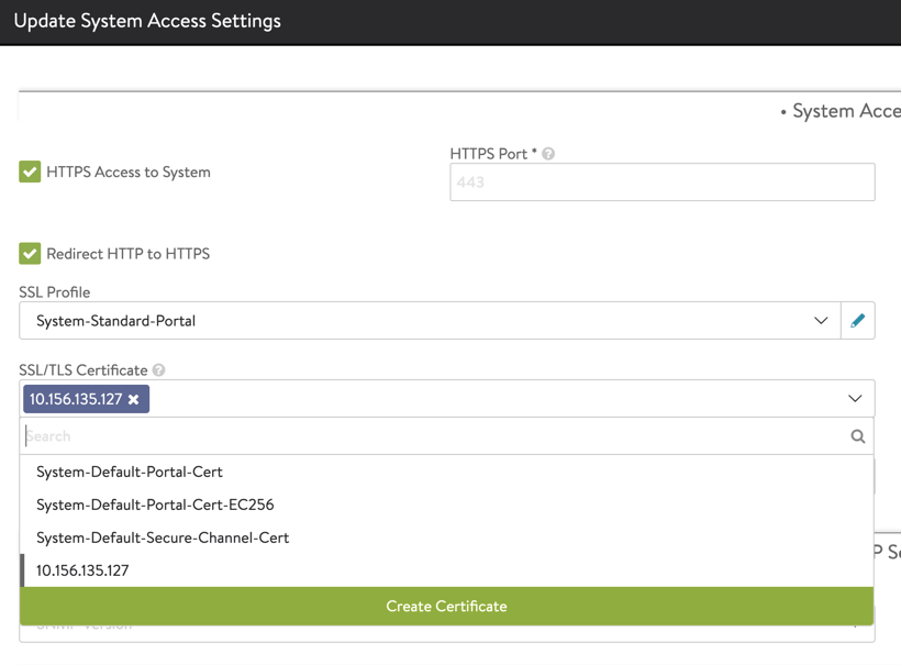 Click on the caret under SSL/TLS Certificate to expand the options. Click on “Create Certificate” green box.