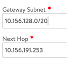 In this example, the 10.156.128.0/20 is the Workload Network, and the next hop is the gateway for the VIP network.
