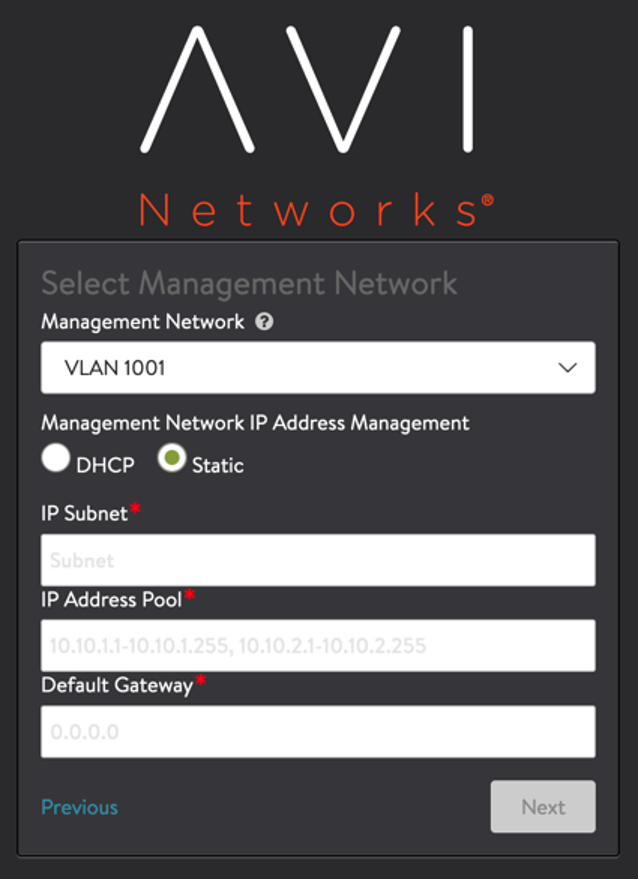 Select the Management PortGroup, IP subnet, gateway, and IP address pool to be utilized. This IP Pool is a range of IP to be used to connect the Service Engine (SE) VMs.
