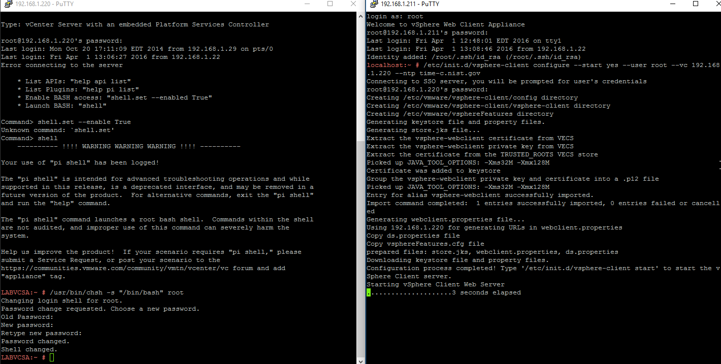 After deploying the OVA, creating an IP Pool, and enabling both SSH and Bash Shell on VCSA, it is time to configure the appliance.